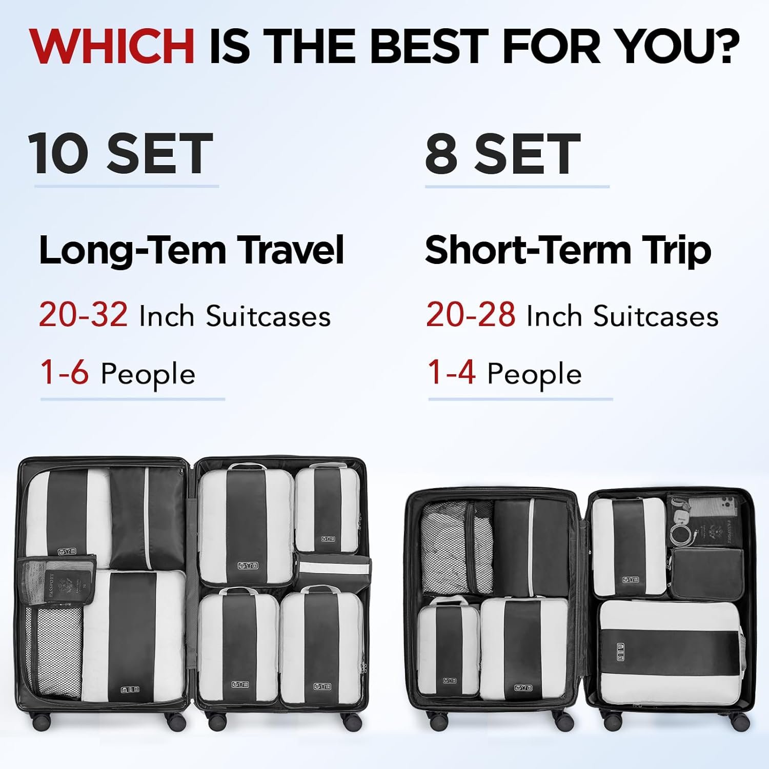 • Ready for Any Adventure – Whether you’re heading out for a weekend getaway, a business conference, or a month-long backpacking trip, this set adapts to any luggage type. We’re here to ensure you travel smarter, pack better, and enjoy every moment of your journey with peace of mind.